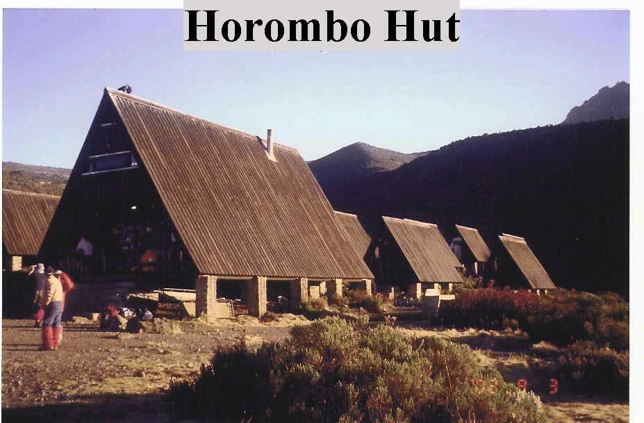The porters served us a light lunch and we packed our gear. Outside the hut we looked back at the horror of the stratospheric scree slope and then postulated the reason the climb is begun in the dark. In daylight hours, the task would be so daunting that the number of washouts would be unacceptable. The round trip to Uhuru Peak from Kibo Hut was only 8 miles and 4000+ feet of elevation gain but the thin air undoubtedly exacerbated the climb. The summit at 19,339' is over 2000' higher than Everest Base Camp, which is at 17,300'. At noon, we continued the downward trek for another six miles and 3000' in elevation loss to Horombo Hut. Enroute we could but look at the ascending trekkers in amusement as others had grinned at us the previous day.